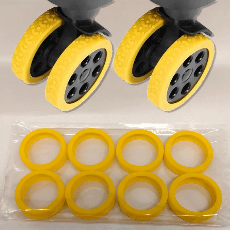 Schützen Sie Ihre Kofferrollen vor Kratzern und reduzieren Sie störendes Klappern beim Reisen. Die robusten Silikonüberzüge lassen sich ohne Werkzeug über Doppelräder ziehen und sind waschbar sowie wiederverwendbar – ideal für jede Reise.