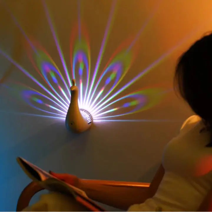Die Magische Pfauen-Projektionslampe erschafft eine traumhafte Atmosphäre mit leuchtenden Farben & anpassbarer Helligkeit. Ideal für gemütliche Abende, romantische Momente & entspannte Rückzugsorte.