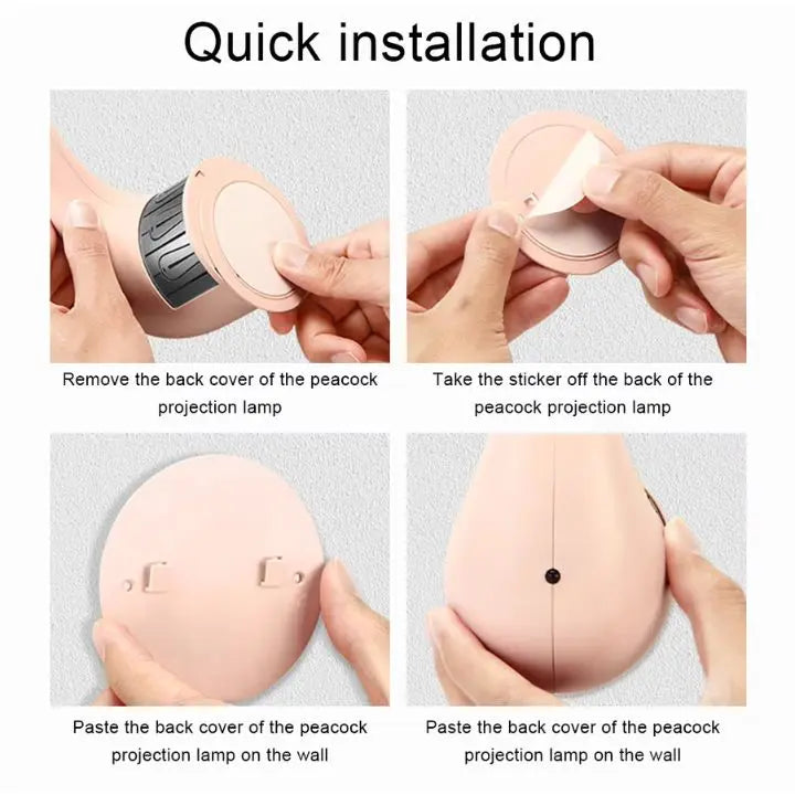 • Lieferumfang: 1x Magische Pfauen-Projektionslampe, 1x Fernbedienung, 1x Ladekabel, 1x Anleitung