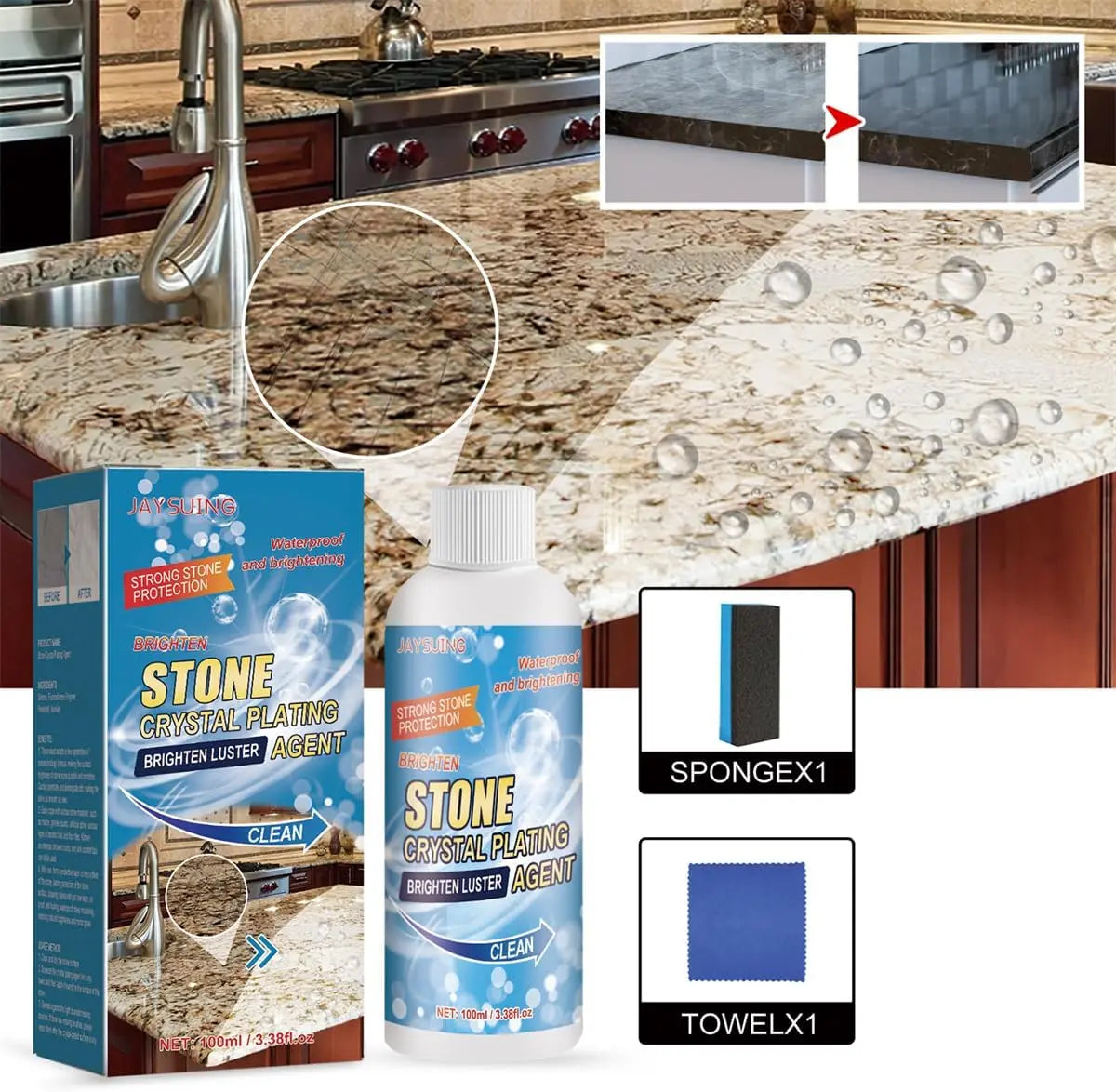 Erleben Sie, wie hartnäckiger Rost und Trübungen verschwinden, während diese sanfte, natürliche Formel Ihren Steinen neues Leben schenkt.